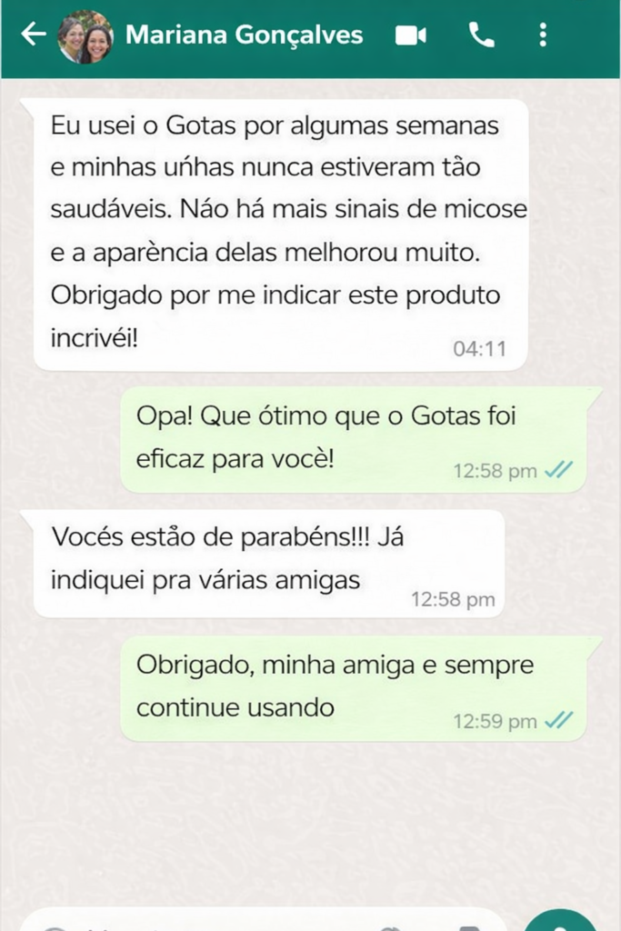 Com o Gotas, você terá resultados surpreendentes em poucas semanas. O processo de regeneração é visível a olho nu, deixando as unhas mais fortes e saudáveis do que nunca. Experimente agora mesmo e sinta a diferença em suas unhas!